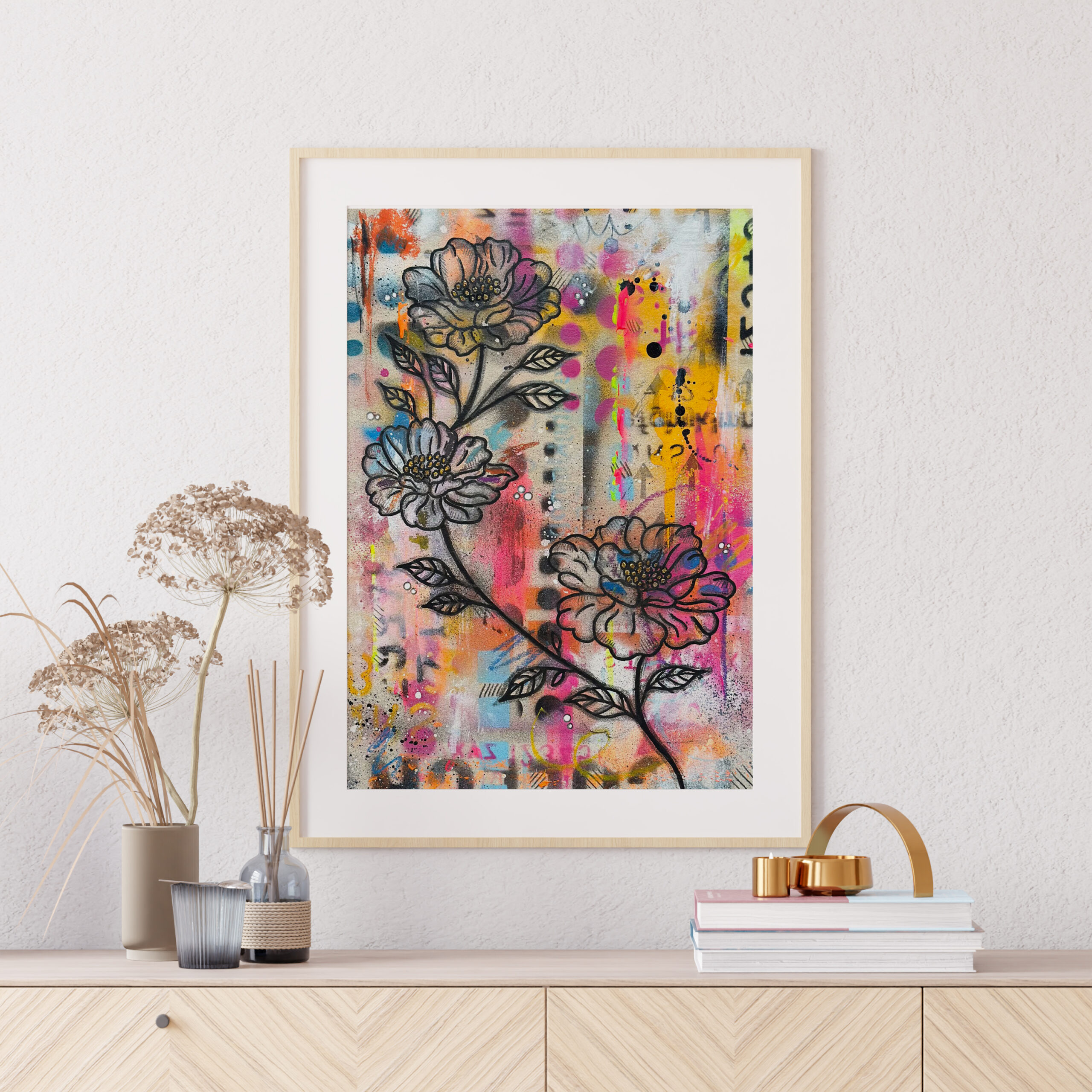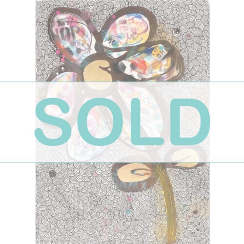 Spray paint and hand illustrated with gold leaf detail.  Original signed artwork.