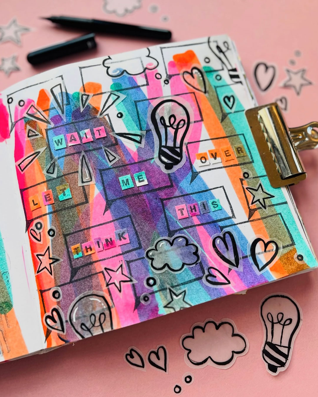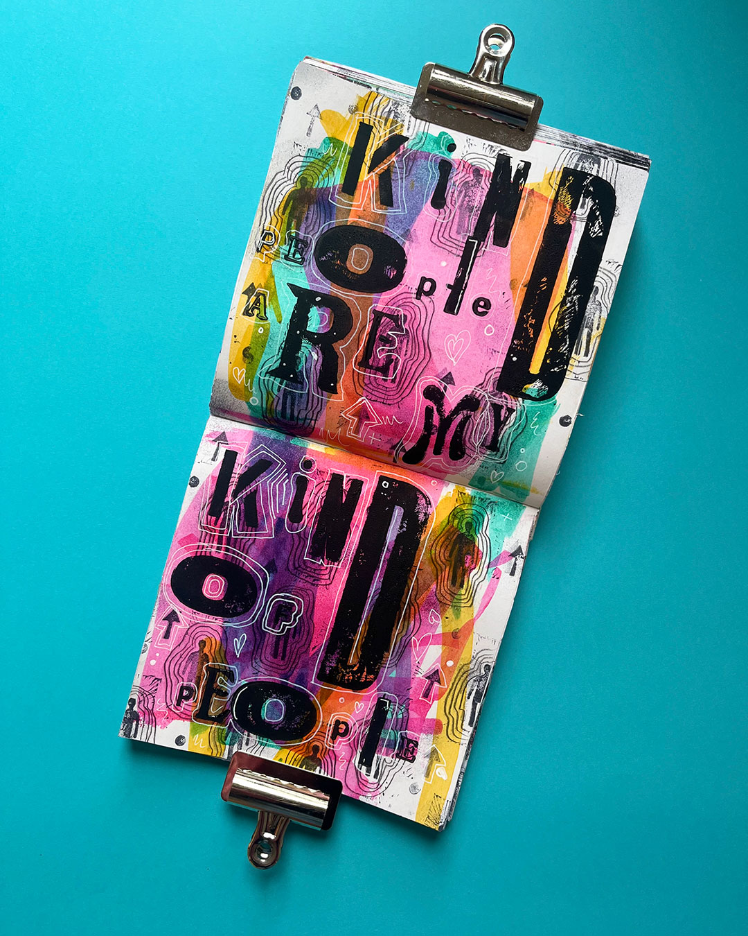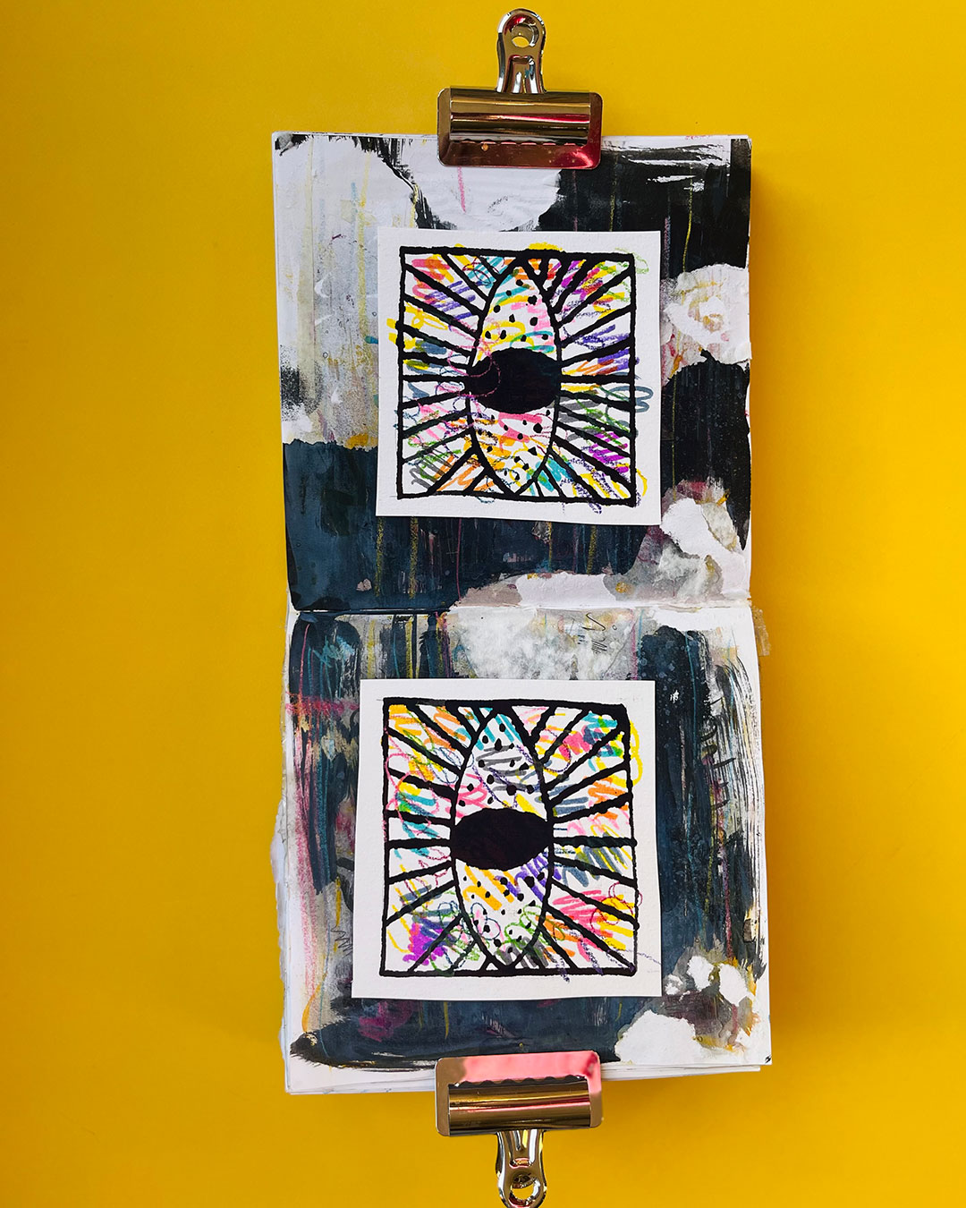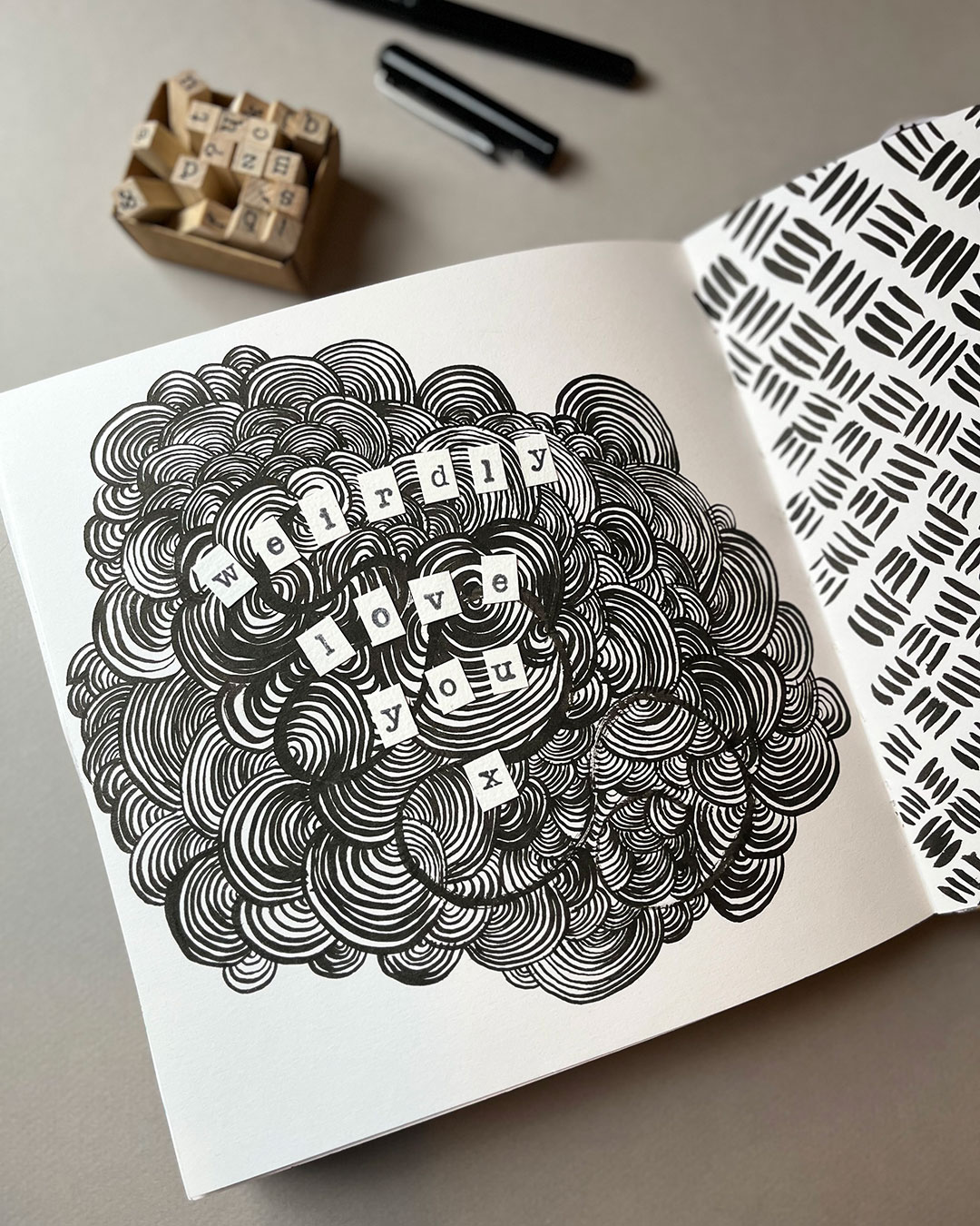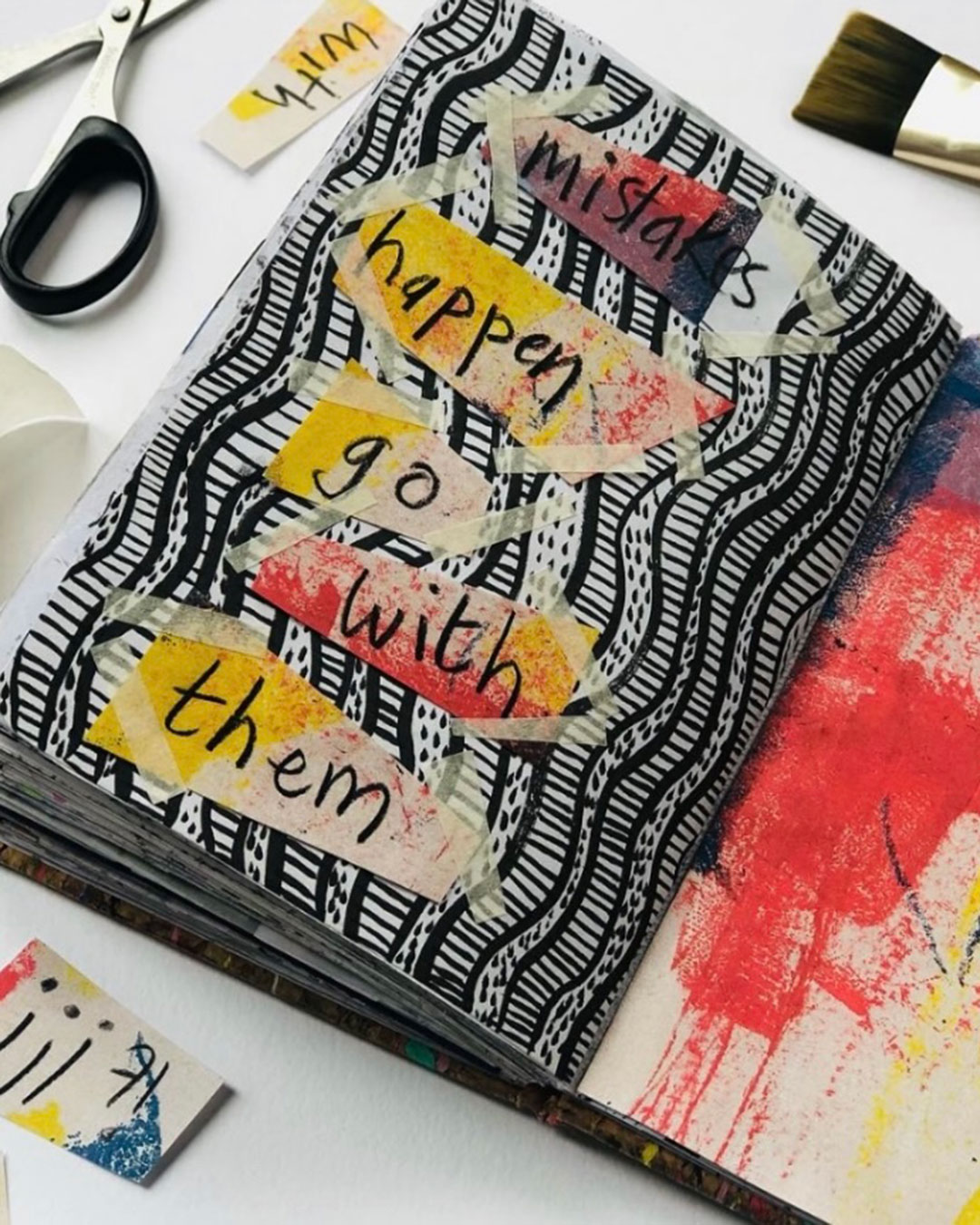 The idea is that anything goes, they don’t have to be finished, or have explanation, some pages get completed over time, and others within 10 minutes, sometimes they don’t go to plan, and there are occasionally whoops-a-daises, but sometimes the best things come from those mistakes.